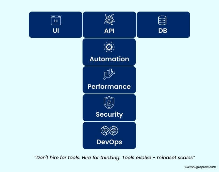 | Technical Skills | Specializes in one area such as manual testing or test automation limited to UI or a single layer. | Requires a versatile skillset spanning manual testing (functional, exploratory, usability), SQL/database validation, and test automation across UI, API, and back-end services, along with familiarity with performance and security tools. |
